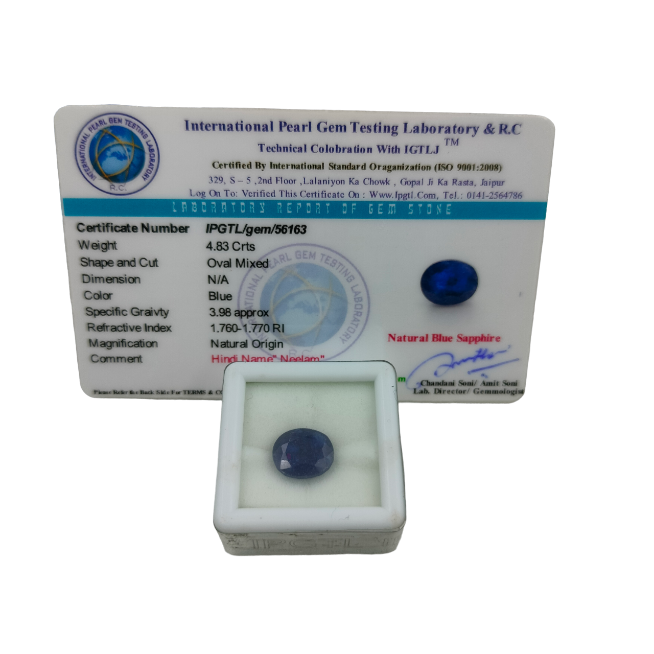 Discover the captivating allure of this exquisite Blue Sapphire, weighing approximately 4.83 carats. Renowned for its deep, mesmerizing blue hue and exceptional clarity, this gemstone exemplifies the finest qualities sought by collectors and jewelry connoisseurs. Blue sapphires are celebrated for their remarkable durability and timeless elegance, making them an ideal choice for heirloom pieces and statement jewelry. Each stone possesses unique characteristics that enhance its individual beauty and value. Whether you're seeking a centerpiece for a custom design or adding to a distinguished collection, this premium sapphire offers both aesthetic magnificence and enduring quality that transcends trends.