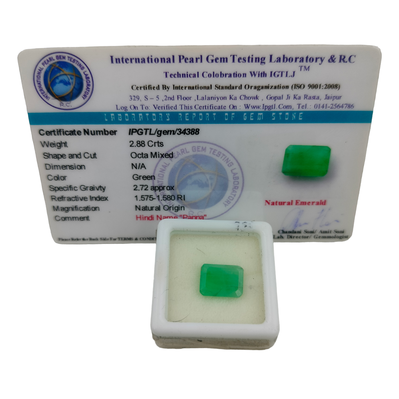 Natural Emerald ~ 2.88 Cts Discover the timeless elegance of this authentic natural emerald, weighing 2.88 carats. Prized for its rich, verdant hue and natural formation, this gemstone embodies the classic beauty that has captivated collectors and jewelry enthusiasts for centuries. Each emerald carries its own distinctive character, with natural inclusions that authenticate its origin. Ideal for bespoke jewelry designs, investment collections, or as a centerpiece for custom creations, this gemstone represents genuine quality and enduring value. Perfect for those seeking genuine, uncompromised natural beauty in their gemstone selections.