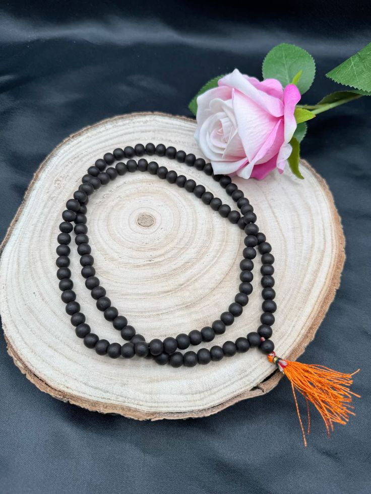 108+1 Beads Natural Black Ebony bead Karungali Jaap Mala (8MM)