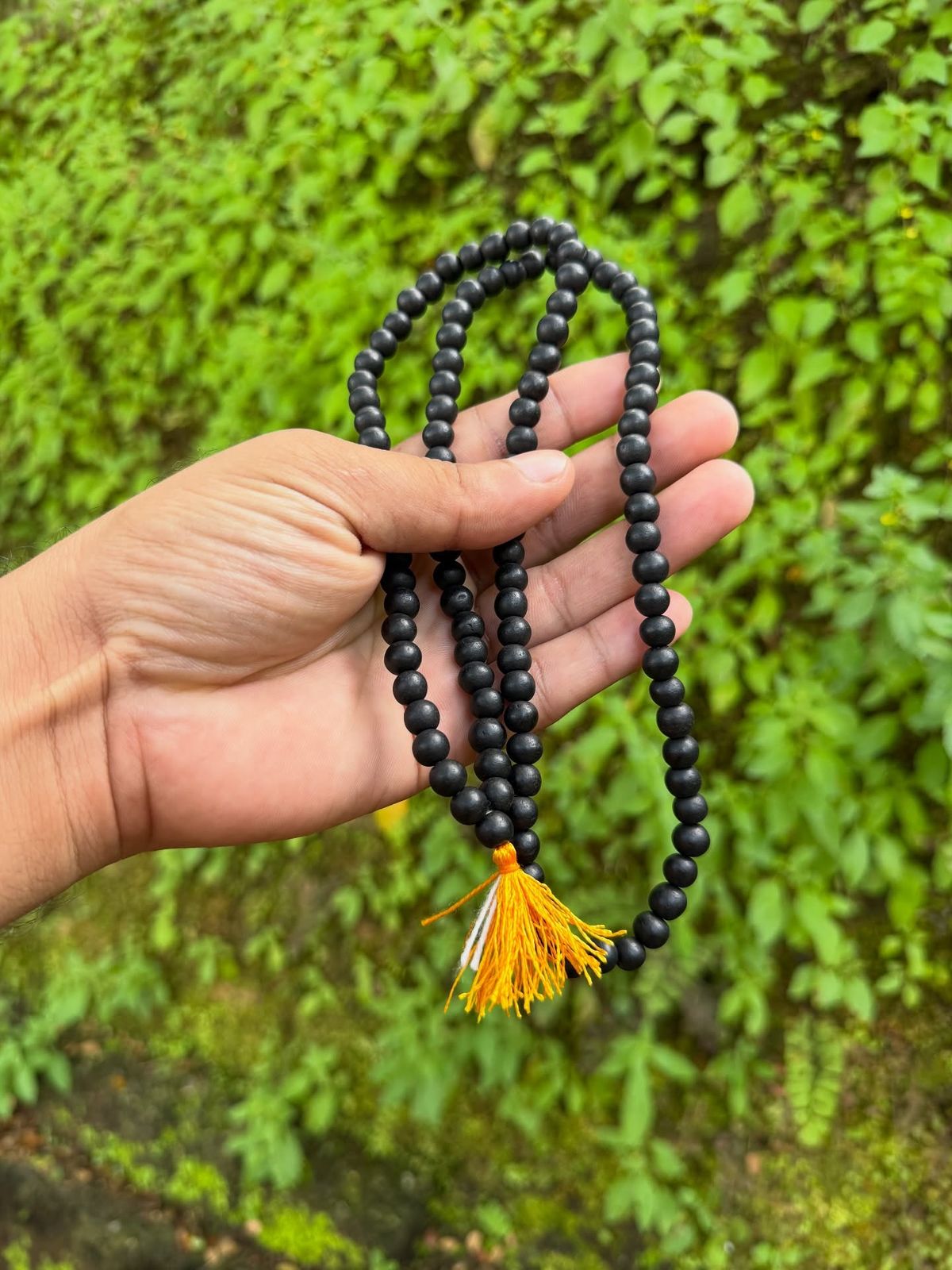 Authentic 108+1 bead Jaap Mala crafted from natural black ebony wood (Karungali), featuring 8mm beads. This traditional mala is designed for meditation, mantra recitation, and spiritual practice. The extra bead serves as a marker to track completion of prayer cycles. Each bead is hand-selected for consistent quality and natural grain patterns. Ebony's dense composition ensures durability through regular use. Ideal for practitioners seeking a genuine, sustainably sourced mala that combines spiritual significance with timeless elegance.