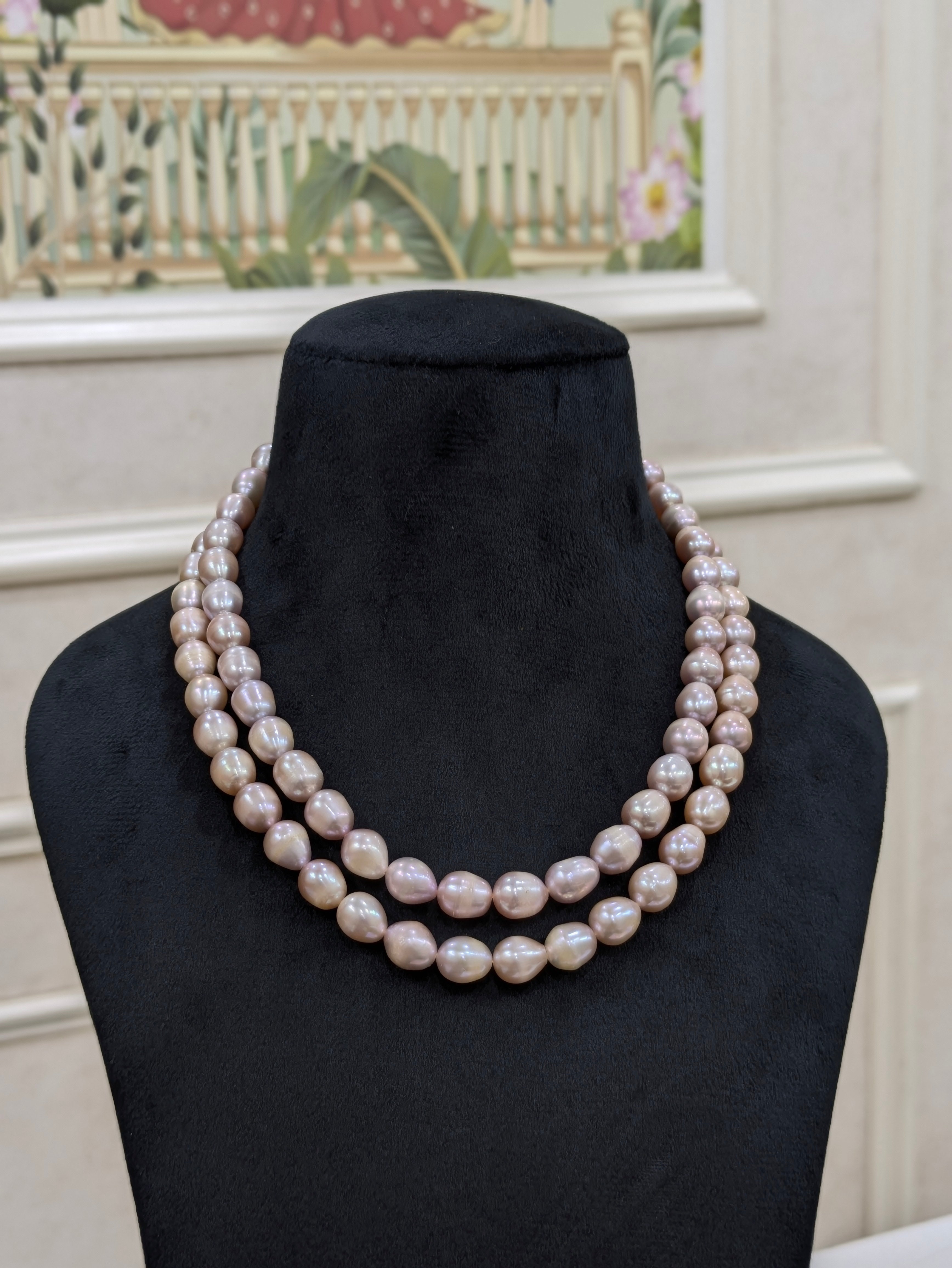 Elevate your style with this beautifully handcrafted Pink Pearl 2-Layer Necklace, designed with premium 8.5mm freshwater pearls known for their natural blush tone and soft, glowing luster. Each pearl is carefully matched for color and shape, creating a harmonious and graceful look.