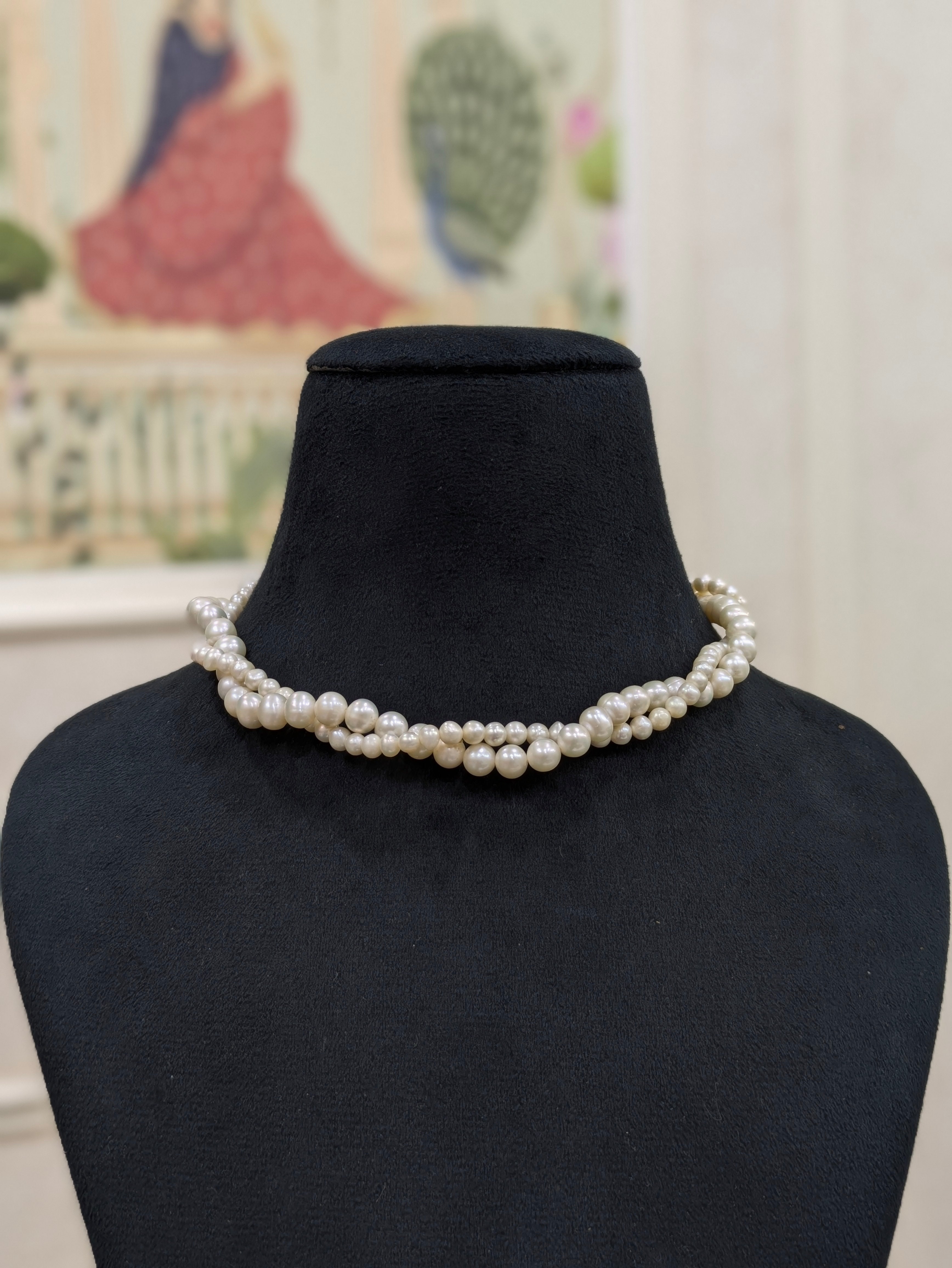 Pink Pearl Necklace β 2 LayerTwisted Round Pearl Necklace | Freshwater Pearls | Elegant Statement Jewelry
