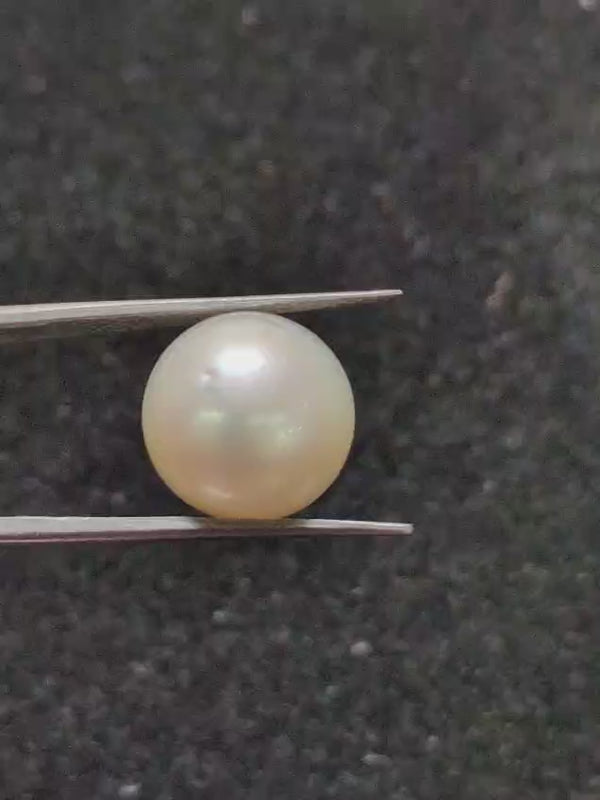 South Sea Pearl ~ 13.38 Cts, Round This exquisite South Sea pearl showcases the lustrous beauty and timeless elegance characteristic of premium pearls from the South Pacific. Weighing 13.38 carats, this round specimen displays the classic symmetry and refined appearance that discerning collectors and jewelry connoisseurs seek. South Sea pearls are renowned for their substantial size, warm overtones, and exceptional luster, making them ideal for creating statement pieces or adding sophistication to any collection. The round shape ensures versatile design applications, whether set in contemporary or traditional jewelry settings. A distinguished choice for those who appreciate genuine gemstone quality and natural radiance.