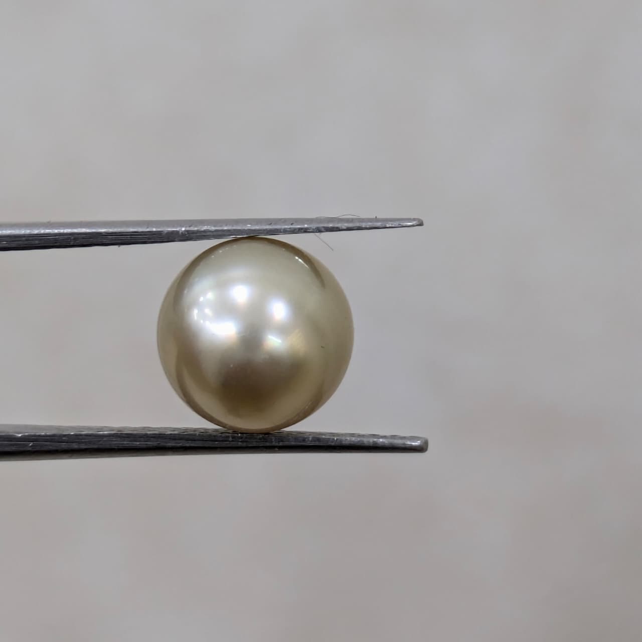 South Sea Pearl ~ 4.22 Cts, Round This exquisite South Sea pearl showcases the lustrous beauty characteristic of premium cultured pearls from the waters of Australia and the South Pacific. Weighing 4.22 carats, this round specimen displays the classic symmetry and depth of lustre that discerning collectors seek. South Sea pearls are renowned for their larger size, thick nacre, and warm, radiant glow. The perfectly round shape ensures optimal light reflection and versatility for fine jewellery applications. An investment-grade gemstone suitable for bespoke designs and heirloom pieces.