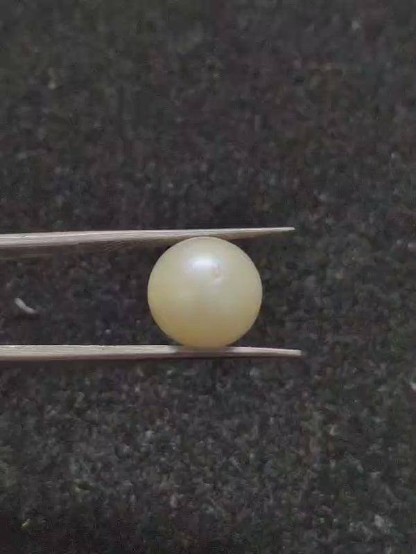 South Sea Pearl ~ 9.19 Cts, Round Discover the timeless elegance of this exquisite South Sea pearl, weighing 9.19 carats. Renowned for their lustrous surface and warm, golden undertones, South Sea pearls represent the pinnacle of natural pearl cultivation. This round specimen showcases the classic symmetry and sophisticated appeal that makes South Sea pearls highly coveted by collectors and jewelry connoisseurs. Its substantial weight and flawless spherical form ensure exceptional versatility for bespoke jewelry designs. A genuine investment piece that embodies rarity, beauty, and enduring value.