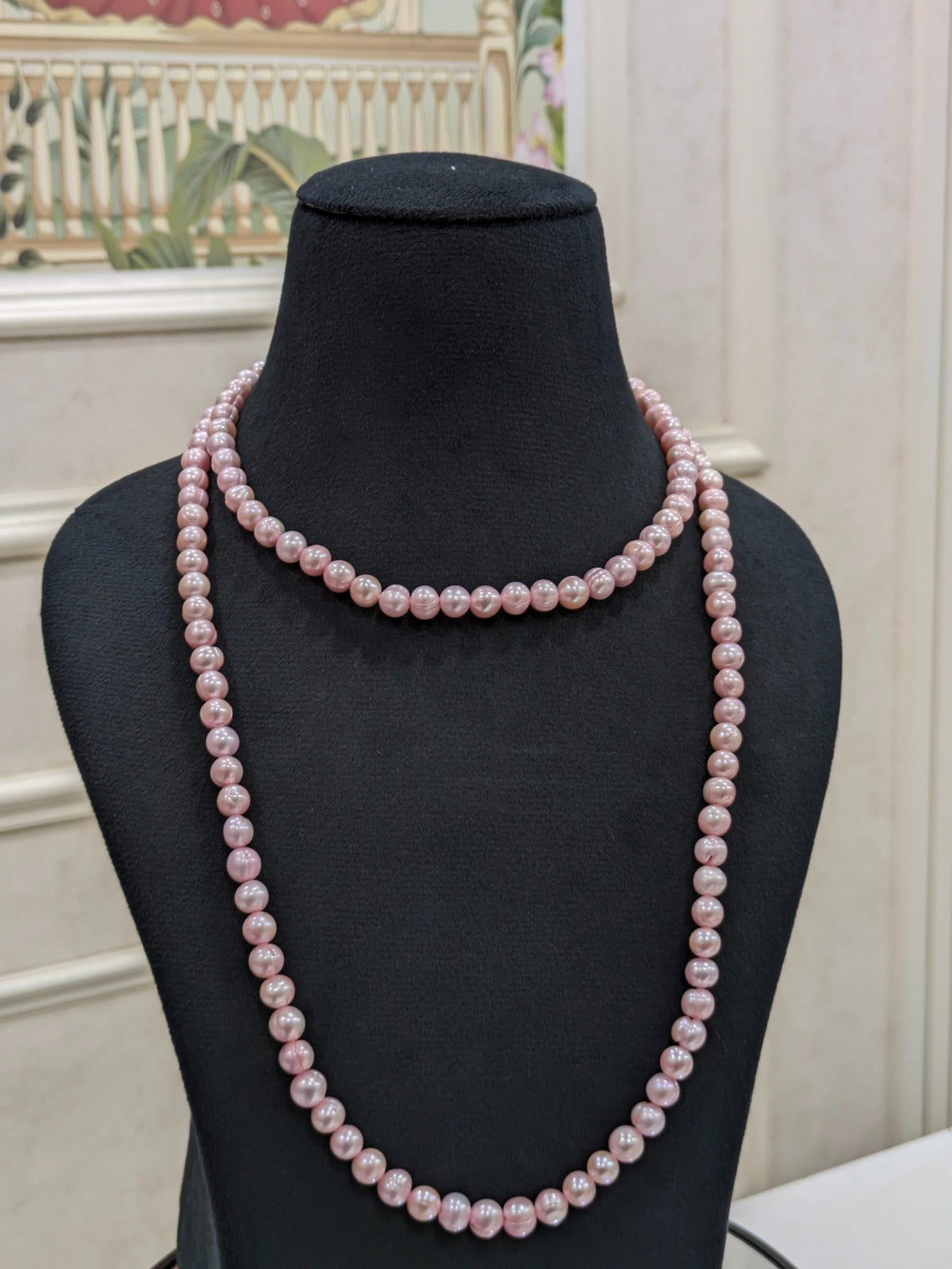 Elevate your jewelry collection with this exquisite Pink Fresh Water Pearl Necklace. Featuring lustrous, naturally-hued pink pearls sourced from premium freshwater sources, this piece combines timeless elegance with contemporary sophistication. Each pearl is carefully selected for its radiant glow and smooth surface, ensuring a refined aesthetic that complements both casual and formal occasions. The necklace showcases the organic beauty of freshwater pearls, known for their durability and unique variations that make every piece distinctly yours. Perfect for those who appreciate genuine gemstone jewelry and understated luxury, this necklace serves as a versatile staple that enhances any wardrobe with subtle grace and enduring appeal.