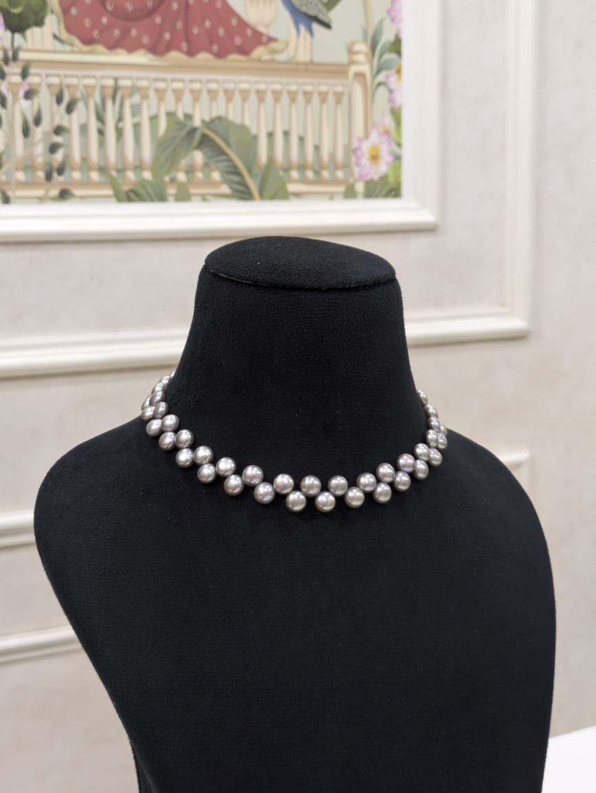Gray Half Round Fancy Shape Pearl Necklace