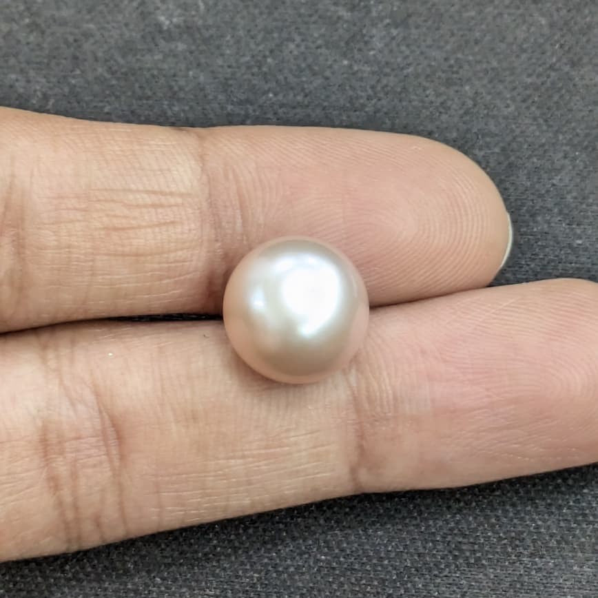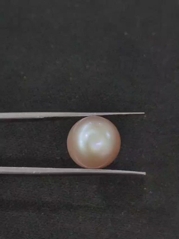 Exquisite halfround freshwater pink pearl weighing 8.20 carats, showcasing a lustrous rose hue with natural iridescence. This loose pearl displays the characteristic soft glow and organic beauty of premium freshwater specimens. Ideal for custom jewelry design, pendant settings, or collectors seeking authentic gemstone quality. Each pearl is unique, reflecting nature's artistry in its subtle color variations and luminous surface.