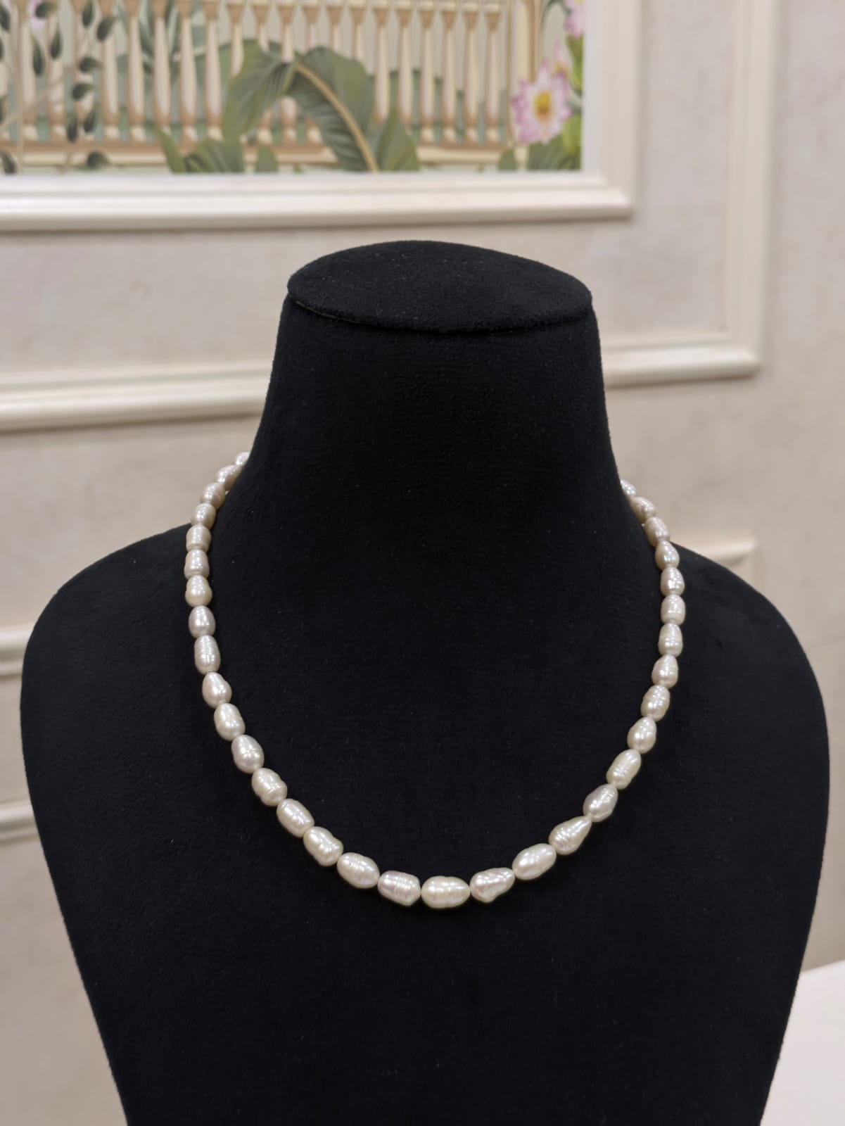 Elevate your jewelry collection with this refined Rice Pearl Necklace, a timeless piece that embodies understated elegance. Featuring lustrous rice-shaped pearls, this necklace offers a sophisticated alternative to traditional round pearls, creating a distinctive silhouette that complements both casual and formal attire. The delicate design showcases the natural beauty and subtle iridescence of quality pearls, making it an ideal choice for those who appreciate classic jewelry with contemporary appeal. Perfect for layering or wearing solo, this versatile necklace transitions seamlessly from day to evening wear.