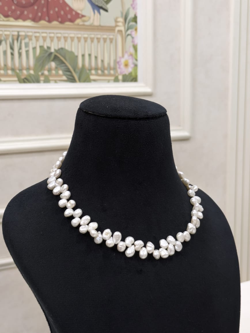 Elevate your jewelry collection with this exquisite White Fancy Baroque Pearl Necklace. Baroque pearls showcase nature's artistic irregularities, each one displaying unique contours and lustrous surfaces that catch light beautifully. The organic, free-form shapes create an understated elegance that complements both contemporary and classic aesthetics. Crafted with refined sophistication, this piece transitions seamlessly from everyday wear to special occasions. The luminous white pearls radiate a timeless appeal, making this necklace a versatile addition to any discerning jewelry wardrobe.