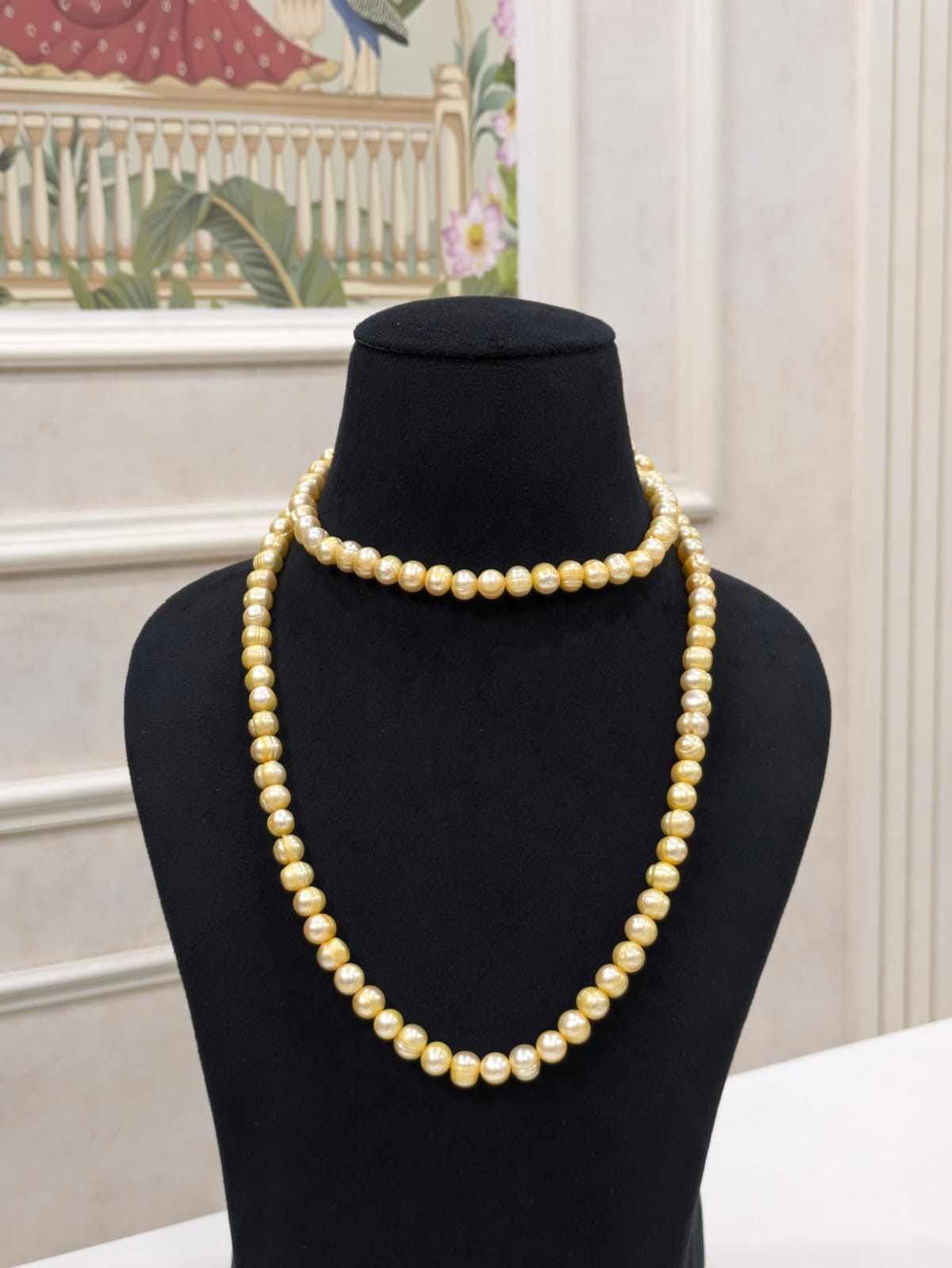 Elevate your jewelry collection with this exquisite Yellow Freshwater Pearl Necklace. Crafted with lustrous golden-hued pearls harvested from freshwater sources, this piece combines timeless elegance with natural beauty. Each pearl is carefully selected for its radiant glow and smooth surface, creating a sophisticated accessory suitable for both everyday wear and special occasions. The warm yellow tones complement a variety of skin tones and outfits, making it a versatile addition to your wardrobe. Perfect for those who appreciate genuine gemstone jewelry and understated luxury.